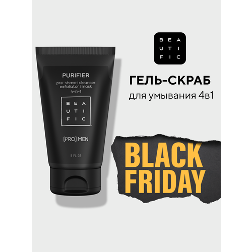 НАЙТИ ВЫГОДНЕЕ - BEAUTIFIC Гель скраб для лица 4 в 1 PURIFIER мужской, очищающий, с кислотами, мягкий, от черных точек, 150 мл