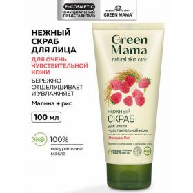 НАЙТИ ВЫГОДНЕЕ - Скраб для очень чувствительной кожи GREEN MAMA малина и рис нежный 100 мл