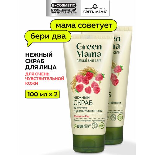 НАЙТИ ВЫГОДНЕЕ - Скраб для очень чувствительной кожи GREEN MAMA малина и рис нежный 100 мл - 2 шт