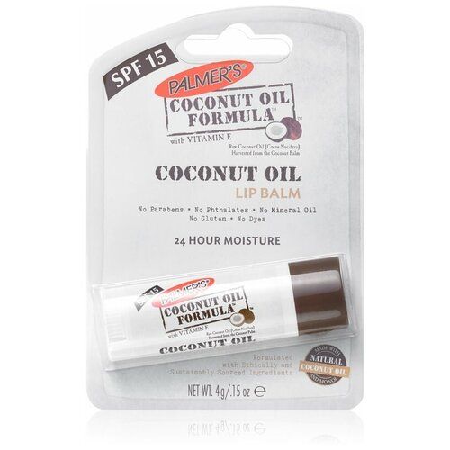 Palmers Питательный бальзам для губ - идеальное средство для длительного увлажнения и защиту ваших губ. Этот удобный в использовании бальзам для губ содержит масло кокоса, витамин Е и SPF 15, обеспечивающий комплексную заботу. Масло кокоса насыщает губы необходимыми питательными элементами, а витамин Е способствует регенерации и поддерживает мягкость губ. Специальная формула с SPF 15 защищает их от вредного воздействия солнечных лучей.