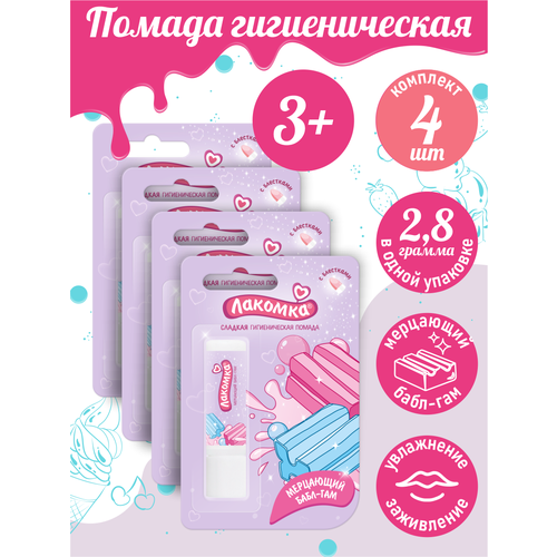 НАЙТИ ВЫГОДНЕЕ - Помада губная гигиеническая Лакомка Мерцающий Бабл-Гам с блёстками 2,8 гр. х 4 шт.