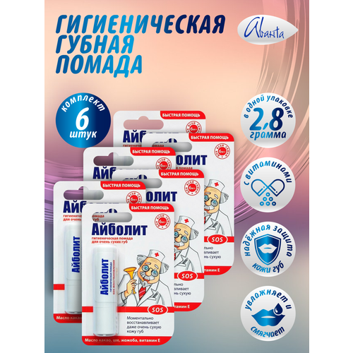 НАЙТИ ВЫГОДНЕЕ - Губная помада гигиеническая Аванта Айболит SOS-восстановление 2,8 гр. х 6 шт.