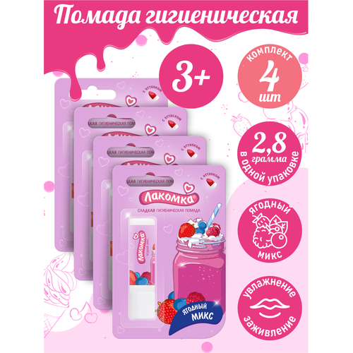 НАЙТИ ВЫГОДНЕЕ - Помада губная гигиеническая Лакомка Ягодный микс 2,8 гр. х 4 шт.