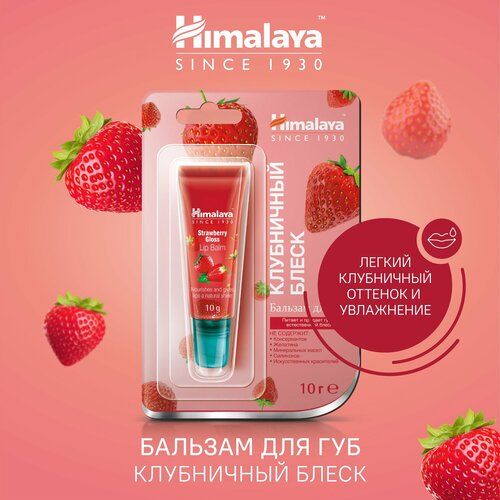НАЙТИ ВЫГОДНЕЕ - Himalaya Since 1930 Бальзам для губ Клубничный блеск увлажняющий, питательный, натуральный, оттеночный, 10 г.