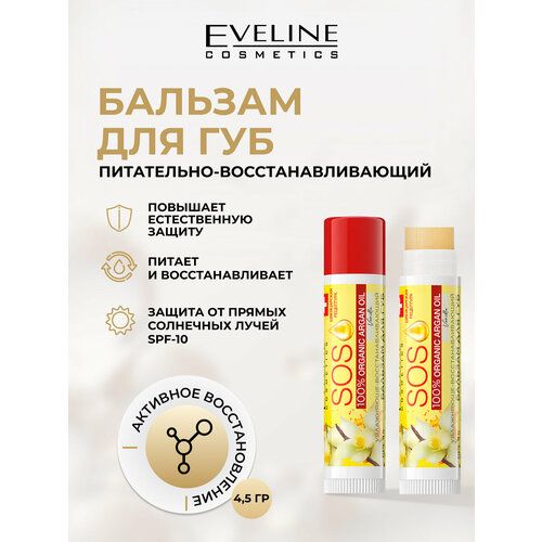 НАЙТИ ВЫГОДНЕЕ - Питательно-восстанавливающий бальзам для губ - vanilla серии sos 100% organic argan oil