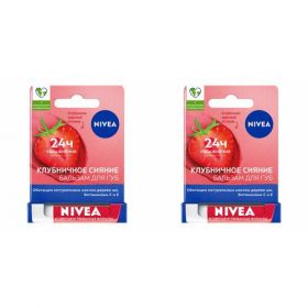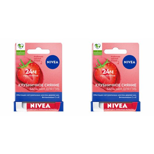 НАЙТИ ВЫГОДНЕЕ - Бальзам для губ Nivea, фруктовое сияние, клубника, 4.8 г, 2 шт