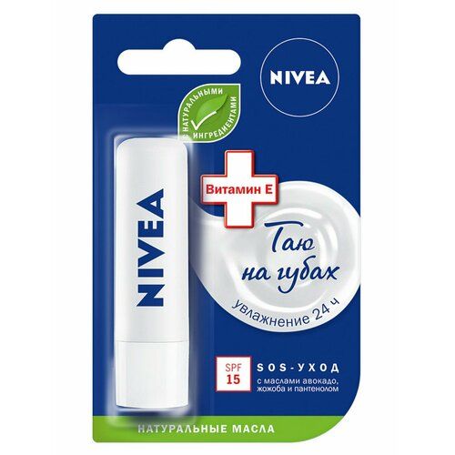 Хотите успокоить кожу Ваших губ и обеспечить им длительную защиту? Высокоэффективная формула бальзама для губ Nivea SOS-уход с витамином Е, маслами жожоба и авокадо мгновенно тает на губах, увлажняя их в течение 24 часов и предотвращая потерю влаги, сохраняя их мягкими и нежными. Ценные масла в составе бальзама широко применяются в косметических продуктах. Они быстро абсорбируются кожей, делают ее мягкой и эластичной. Кроме того, они получили высокую оценку экспертов в области ухода за кожей, благодаря высокому содержанию витаминов, питательных веществ, белков, антиоксидантов и полезных жиров. Подходит для использования в любое время года, особенно в сухой летний период или холодный зимний – для быстрого восстановления кожи губ после обветривания. Натуральные ингредиенты в составе. Применение: наносите бальзам на кожу губ тонким слоем, обновляйте бальзам на губах по мере необходимости и в зависимости от состояния сухости губ. Заметный результат при регулярном использовании.