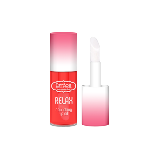 Питательное масло Relax дарит зеркальный блеск и визуально увеличивает губы.