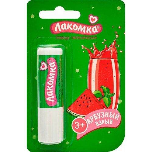лакомка помада губная гигиеническая арбузный взрыв 2,8. увлажняет, питает кожу губ уход за кожей губ содержит масло какао, экстракт календулы, вит е бренд лакомкалакомка помада губная гигиеническая арбузный взрыввнешний вид: помада белого цвета, с запахом арбуза. детям с 3-х лет результат: мягкая и нежная кожа губнаносить на кожу губ по мере необходимости. не применять в пищу разрешена для ухода за губами с 3-х лет. детям использовать только под присмотром взрослых.
