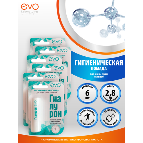НАЙТИ ВЫГОДНЕЕ - EVO Гигиеническая помада Гиалурон для очень сухой кожи губ 2,8 гр. х 6 шт.