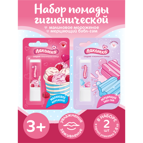 НАЙТИ ВЫГОДНЕЕ - Набор гигиенических помад Лакомка Мерцающий Бабл-Гам с блёстками+Малиновое мороженое с оттенком