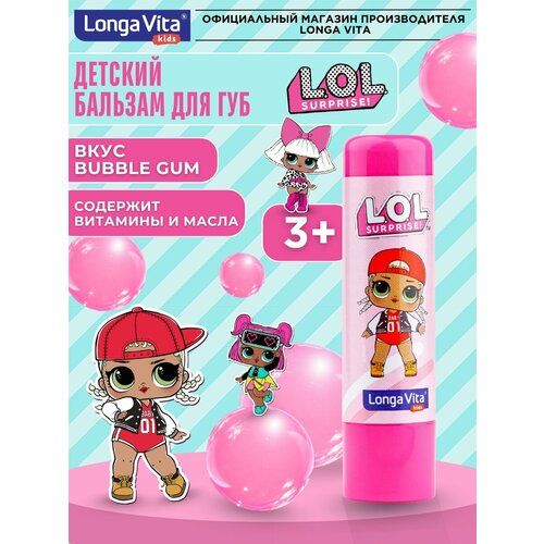 НАЙТИ ВЫГОДНЕЕ - Гигиеническая помада Longa Vita LOL Bubble Gum, для детей