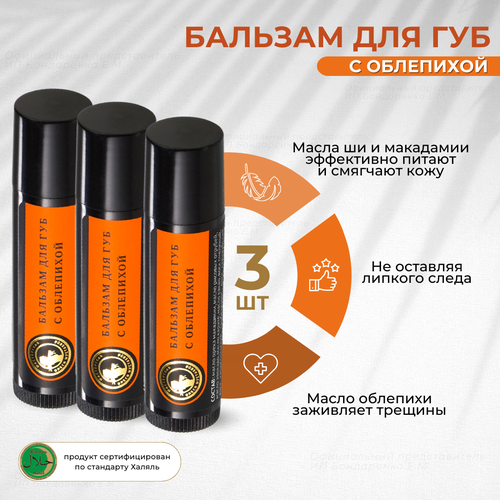 НАЙТИ ВЫГОДНЕЕ - Бальзам для губ Облепиховый Мастерская Олеси Мустаевой натуральный 3шт по 5гр