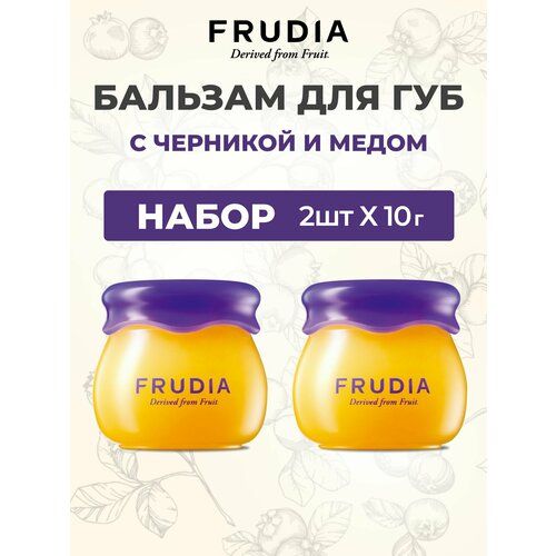 НАЙТИ ВЫГОДНЕЕ - FRUDIA Набор подарочный бальзам для губ от трещин увлажняющий с черникой и медом в баночке 2*10 г, Корея