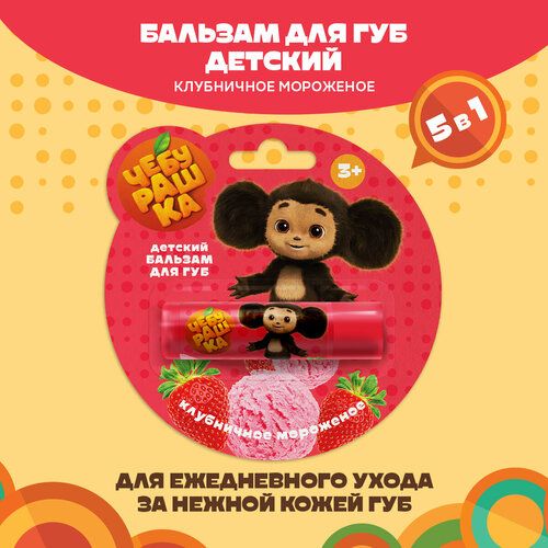 НАЙТИ ВЫГОДНЕЕ - Детский бальзам для губ ЧЕБУРАШКА, Клубничное мороженое, 4,2 г