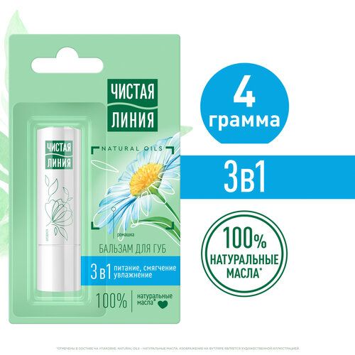 НАЙТИ ВЫГОДНЕЕ - Чистая Линия бальзам для губ 3в1 ромашка питание и увлажнение, с витамином Е и натуральными маслами 4 гр