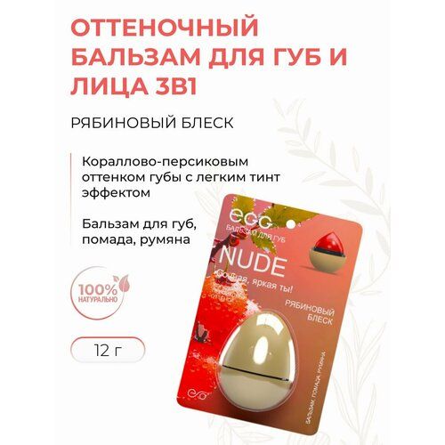 Бальзам для губ, помада, румяна Рябиновый блеск, кораллово-персиковый оттенок, 12 г