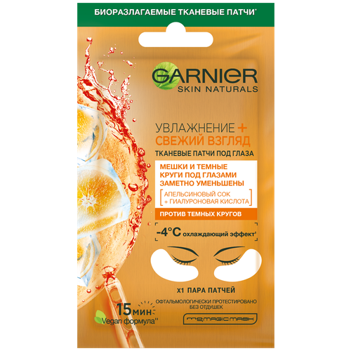 НАЙТИ ВЫГОДНЕЕ - GARNIER Тканевые патчи под глаза Увлажнение + свежий взгляд против мешков и темных кругов под глазами, 2 шт.