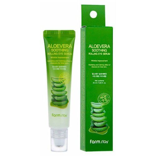Успокаивающая сыворотка для кожи вокруг глаз Aloevera Soothing Rolling Eye Serum южнокорейской марки Farm Stay подходит всем, особенно рекомендована для кожи с признаками возрастных изменений и склонной к сухости. Невесомая текстура легко и равномерно распределяется при помощи удобного аппликатора, мгновенно впитывается, не оставляет следов или липкой плёнки, оказывает комплексное действие.