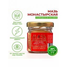 Артикул: 1969-992. Вес: 90 гр, Назначение: Антивозрастная, Компоненты: Мёд, Размер упаковки: 4.5 x 5 x 4.2 см, Температурное ограничение: Нет, Вес, г/Объём, мл: 30, Возраст: От 30 лет, Вид: Мазь, Тип кожи: Для всех типов, Применение: Универсальный, Область применения: Для области вокруг глаз. В основе мази содержатся природные компоненты, которые бережно ухаживают за нежной кожей вокруг глаз. Мазь может способствовать устранению отёков, тёмных кругов под глазами следов усталости. Мазь способна мягко заполнять участки морщин питательными веществами, омолаживая кожу, придавая взгляду свежий и ухоженный вид. Состав: воск пчелиный, мёд, масла жожоба, персика, миндаля, касторовое масло, масло шиповника, облепиховое масло, масло какао. Способ применения: наносить похлопывающими движениями в области вокруг глаз кончиками пальцев. Не втирать, не массировать. Противопоказания: индивидуальная непереносимость компонентов. Не является лекарственным средством. Средство косметическое для ухода за кожей. Только для наружного применения.