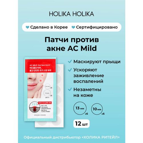 НАЙТИ ВЫГОДНЕЕ - Holika Holika Точечные заживляющие патчи от прыщей AC Mild Red Spot Patch, 12 шт в упаковке