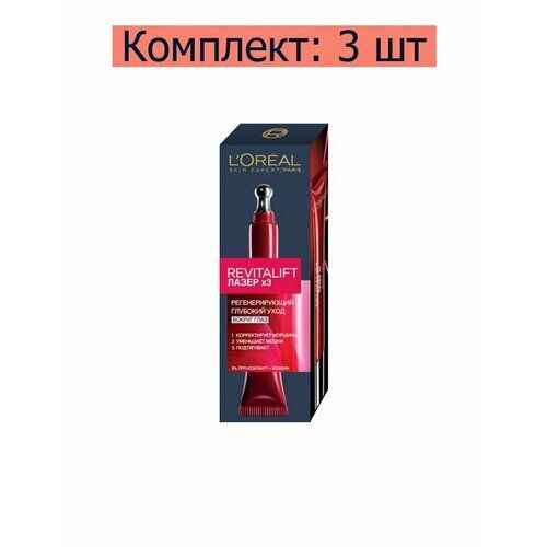 НАЙТИ ВЫГОДНЕЕ - L'Oreal Paris Крем антивозрастной Revitalift Лазер х3 против морщин для области вокруг глаз, 15 мл, 3 шт