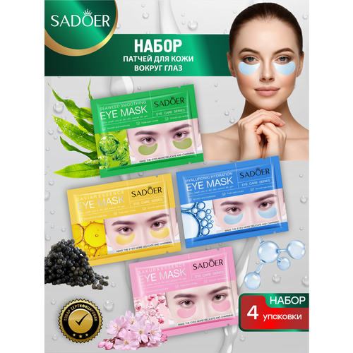 НАЙТИ ВЫГОДНЕЕ - Набор патчей для кожи вокруг глаз Sadoer гиалуроновые + с эссенцией икры + лифтинг-эффект + сакура