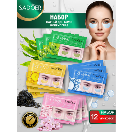 НАЙТИ ВЫГОДНЕЕ - Набор патчей для кожи вокруг глаз Sadoer гиалуроновые+с эссенцией икры+лифтинг-эффект+сакура по 3 шт