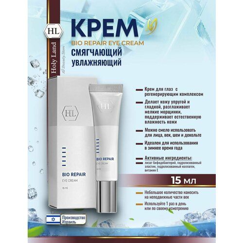 Holy Land Bio BIO REPAIR EYE CREAM - это профессиональное средство для ухода за кожей вокруг глаз, которое обеспечивает восстановление и увлажнение кожи, делая ее более упругой и эластичной.