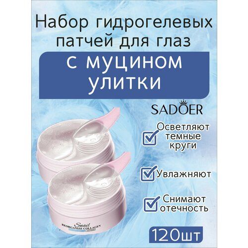 НАЙТИ ВЫГОДНЕЕ - Sadoer. Набор патчей для глаз гидрогелевые с муцином улитки и коллагеном, 60 пар