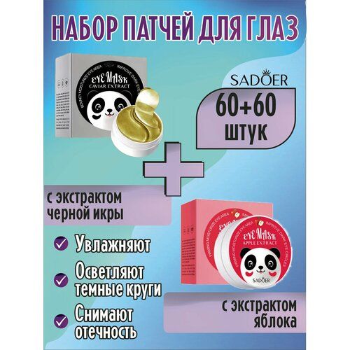 НАЙТИ ВЫГОДНЕЕ - Sadoer. Набор патчей для глаз: С экстрактом Черной Икры + С экстрактом Яблока, 60 пар