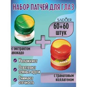 НАЙТИ ВЫГОДНЕЕ - Sadoer. Набор патчей для глаз: С экстрактом Авокадо + С коллагеном Граната, 60 пар