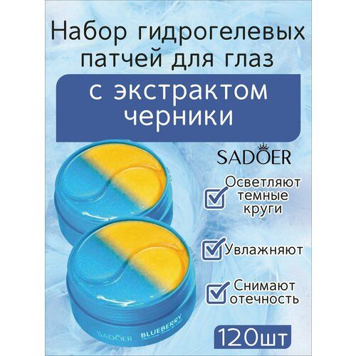 НАЙТИ ВЫГОДНЕЕ - Sadoer. Набор патчей для глаз гидрогелевые с экстрактом черники, 60 пар