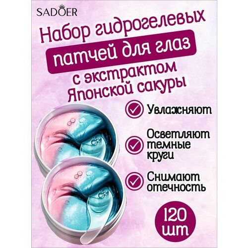 НАЙТИ ВЫГОДНЕЕ - Sadoer. Набор патчей для глаз гидрогелевые с экстрактом цветков Японской сакуры, 120 штук.