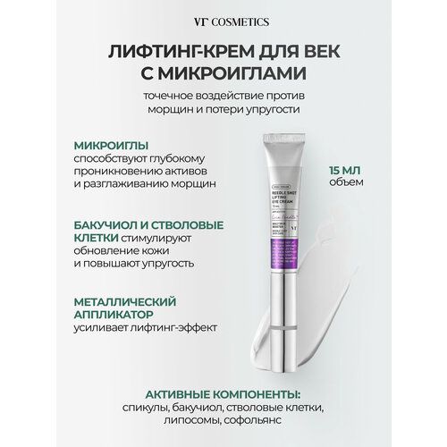Массажный лифтинг-крем для век с микроиглами VT Cosmetics Reedle Shot Lifting Eye Cream помогает в борьбе с выраженными признаками старения, разглаживает мимические морщины и сокращает выраженность кожных заломов.