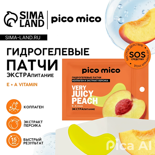 НАЙТИ ВЫГОДНЕЕ - Патчи для области вокруг глаз Very juicy peach, гидрогелевые с коллагеном и экстрактом персика, PICO MICO-1пара