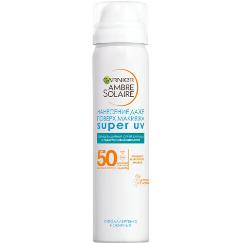 НАЙТИ ВЫГОДНЕЕ - GARNIER Garnier Ambre Solaire Солнцезащитный сухой спрей для лица Эксперт Защита SPF 50+ с гиалуроновой кислотой для чувствительной кожи, 75 мл, 75 мл