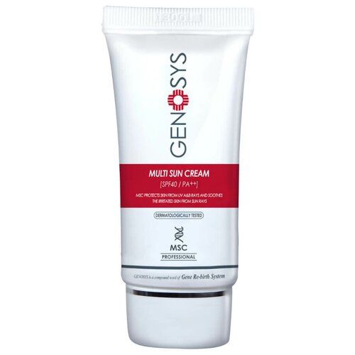 Солнцезащитный крем Genosys Multi Sun Cream для ухода за кожей лица и зоны декольте в дневное время суток. Эффективно защищает ткани от вредного воздействия УФ-лучей спектров А и В, одновременно успокаивая и смягчая кожу. Продукт быстро впитывается, придает коже гладкость и при этом не оставляет ощущения жирной пленки. Может быть использован после солнечных ожогов в качестве защитного или выравнивающего тон кожи средства. Не вызывает раздражений при применении после процедуры микронидлинга, аппаратного воздействия лазером или пилингов. Не содержит парабенов, спирта и красителей. Имеет адгезивный эффект.