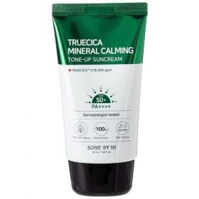 Успокаивающий солнцезащитный крем Some By Mi "Truecica Mineral 100 Calming Sun Cream" SPF 50 с комплексом трав для чувствительной и проблемной кожи. Средство эффективно защищает от разрушающего действия ультрафиолета, увлажняет, снимает зуд и раздражения, устраняет красноту и обладает антибактериальным действием.