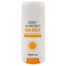 Солнцезащитный стик Farmstay Daily UV Protect Sun Stick SPF50+ PA++++ обеспечивает полную защиту кожи от лучей UVA и UVВ, защищает от фотостарения, интенсивно увлажняет, улучшает упругость и эластичность кожи, устраняет повреждения. Средство очень удобно использовать в любое время и в любом месте, так как благодаря форме стика он легко наносится на кожу и не пачкает руки.