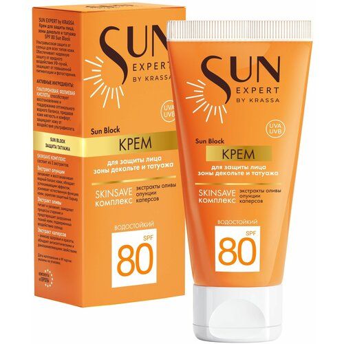 НАЙТИ ВЫГОДНЕЕ - Krassa Sun Expert Крем для защиты лица, зоны декольте и татуажа Sun Block SPF 80 50 мл