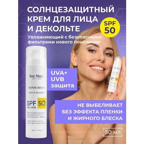 НАЙТИ ВЫГОДНЕЕ - Roz Mary Солнцезащитный крем для лица и декольте против фотостарения кожи без выбеливающего эффекта СПФ 50, 50 мл