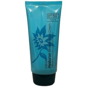 Водостойкий солнцезащитный крем для лица с гиалуроновой кислотой омолаживающий Hyaluron Whitening Sun Cream Cellio (Голубой)