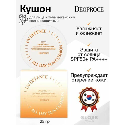НАЙТИ ВЫГОДНЕЕ - Deoproce Солнцезащитный веганский кушон Sun Cushion Big UV Defence All Day Face&Body Vegan SPF50+, PA+++ 25 грDeoproce
