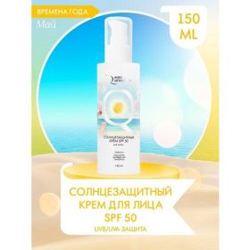 Солнцезащитный крем для лица с индексом защиты SPF 50 - новинка в коллекции Времена года. Даже кратковременное пребывание на солнце способно нанести ожоги, особенно обладателям светлой и чувствительной к УФ – лучам кожи. Крем солнцезащитный с высокими показателями SPF поглощает более 98% УФ – лучей, преобразовывая их в тепловую энергию, сокращает появление морщинок и пигментации. Фильтры широкого действия обеспечивают высокую антиоксидантную и фотостабильную защиту от UVB – лучей, последствиями которых являются покраснения и солнечные ожоги, а так же от UVA - лучей вызывающих фотостарение. MatrikinWH- пептидный актив, стимулирующий выработку коллагена, эластина и гиалуроновой кислоты. Компонент оказывает омолаживающее действие, увлажняет и тонизирует кожу, придает ей упругость и эластичность. Пантенол уменьшает воспаления, способствует регенерации кожи при солнечных повреждениях. Эффективно смягчает, устраняет ощущение стянутости и восстанавливает увлажненность. Коллаген предотвращает интенсивную потерю влаги, делает кожу гладкой и подтянутой. Витамин Е стимулирует обновление клеток и снижает проявление пигментации на коже. Являясь природным антиоксидантом, актив препятствует негативному воздействию окружающей среды и преждевременному фотостарению. Крем СПФ 50 с бархатно-кремовой текстурой образует защитный слой и не создает эффекта маски, что станет настоящей находкой для жирной, комбинированной, сухой и нормальной кожи. Санскрин легко наносится и быстро впитывается. Солнцезащитное средство создано с заботой о коже лица в период отпуска и активных солнечных лучей. Можно применять перед нанесением макияжа и на область вокруг глаз