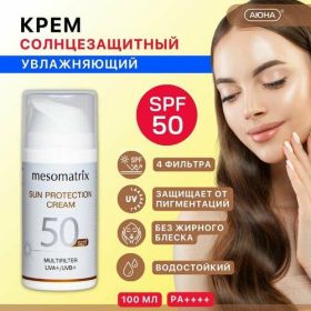 НАЙТИ ВЫГОДНЕЕ - Солнцезащитный крем от загара для лица и тела водостойкий увлажняющий SUN PROTECTION CREAM SPF 50, 100 мл Mesomatrix Professional (Аюна)