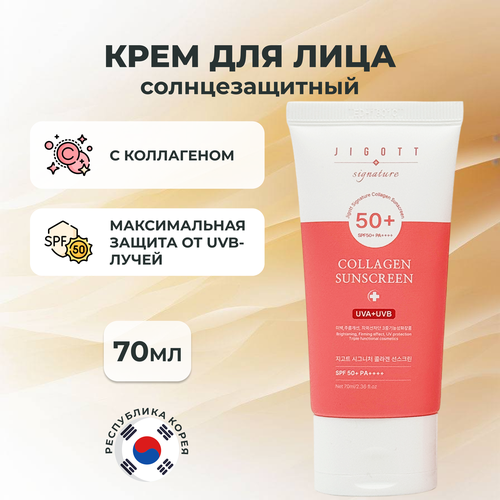 НАЙТИ ВЫГОДНЕЕ - Jigott Крем для лица солнцезащитный с коллагеном Signature Collagen Sunscreen, 70 мл