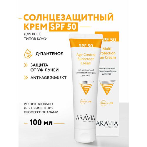 НАЙТИ ВЫГОДНЕЕ - ARAVIA Солнцезащитный анти-возрастной крем для лица Age Control Sunscreen Cream SPF 50, 100 мл