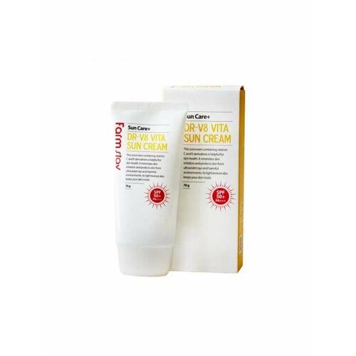 Солнцезащитный крем DR-V8 Vita Sun Cream от FarmStay защитит кожу от негативных последствий воздействия ультрафиолета.