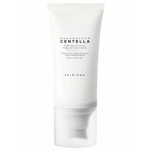 Осветляющий солнцезащитный крем SKIN1004 Madagascar Centella Tone Brightening Tone-Up Sunscreen SPF50+ PA++++ разглаживает кожу, образуя неощутимый защитный слой, который защищает от УФ-излучения, а также осветляет и выравнивает тон. Средство уменьшает видимость пигментации и следов от акне, замедляет процесс старения, не вызывает раздражения. Содержит запатентованный комплекс MadeWhite, ниацинамид, транексамовую кислоту и витамин C, а также физические и химические солнцезащитные фильтры нового поколения.